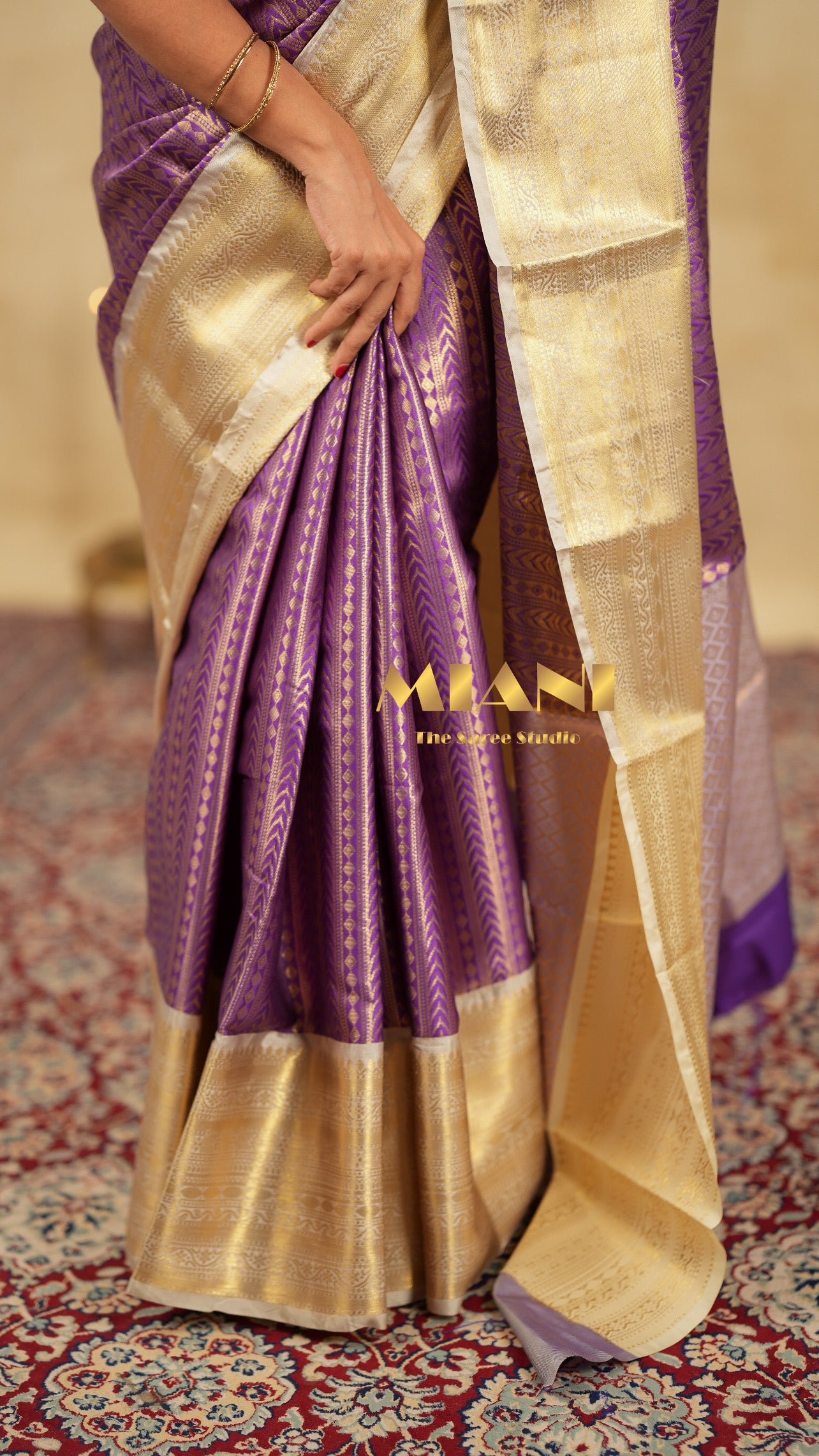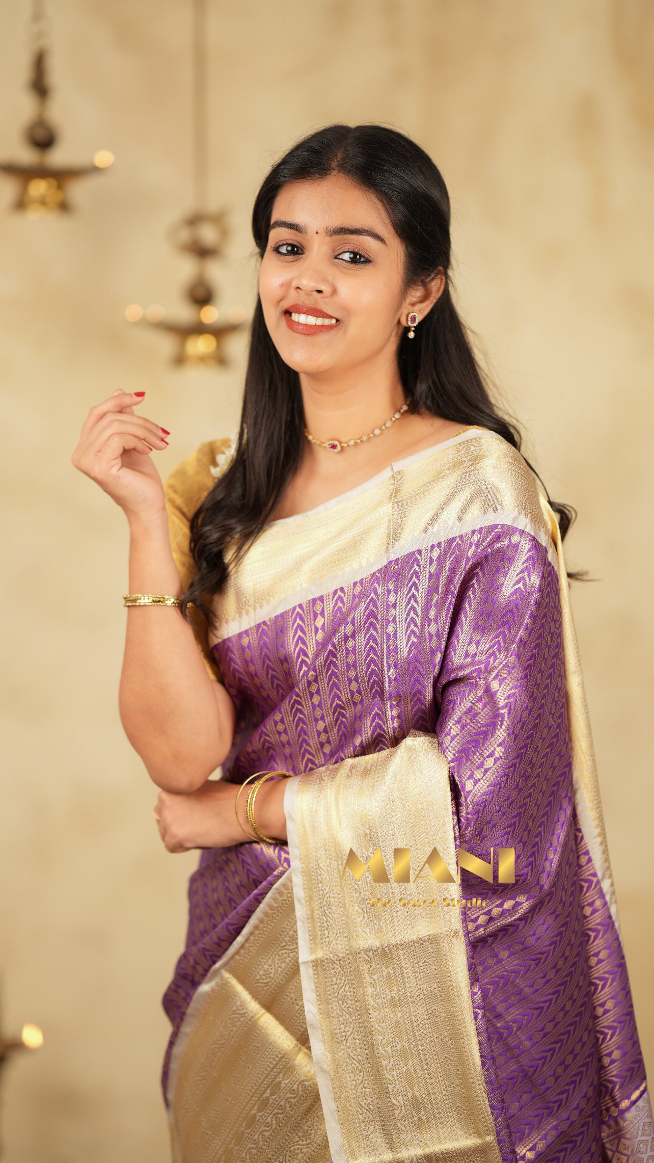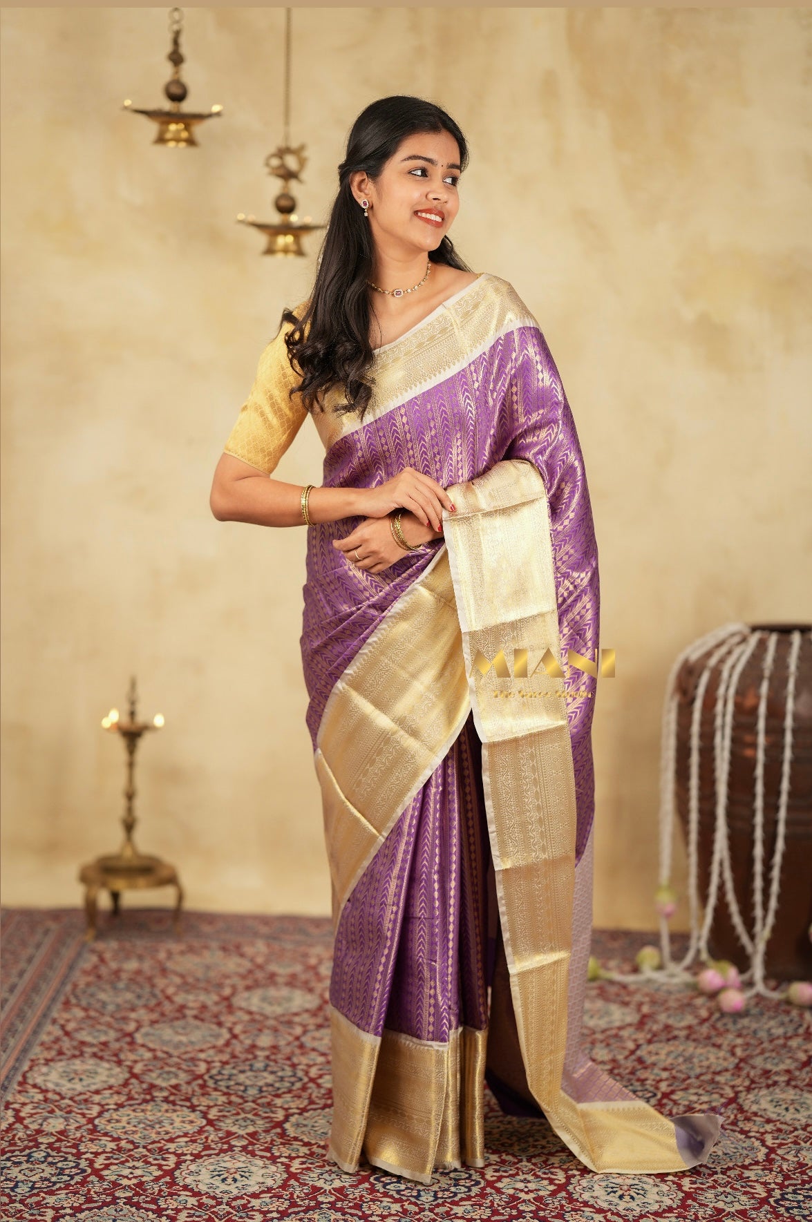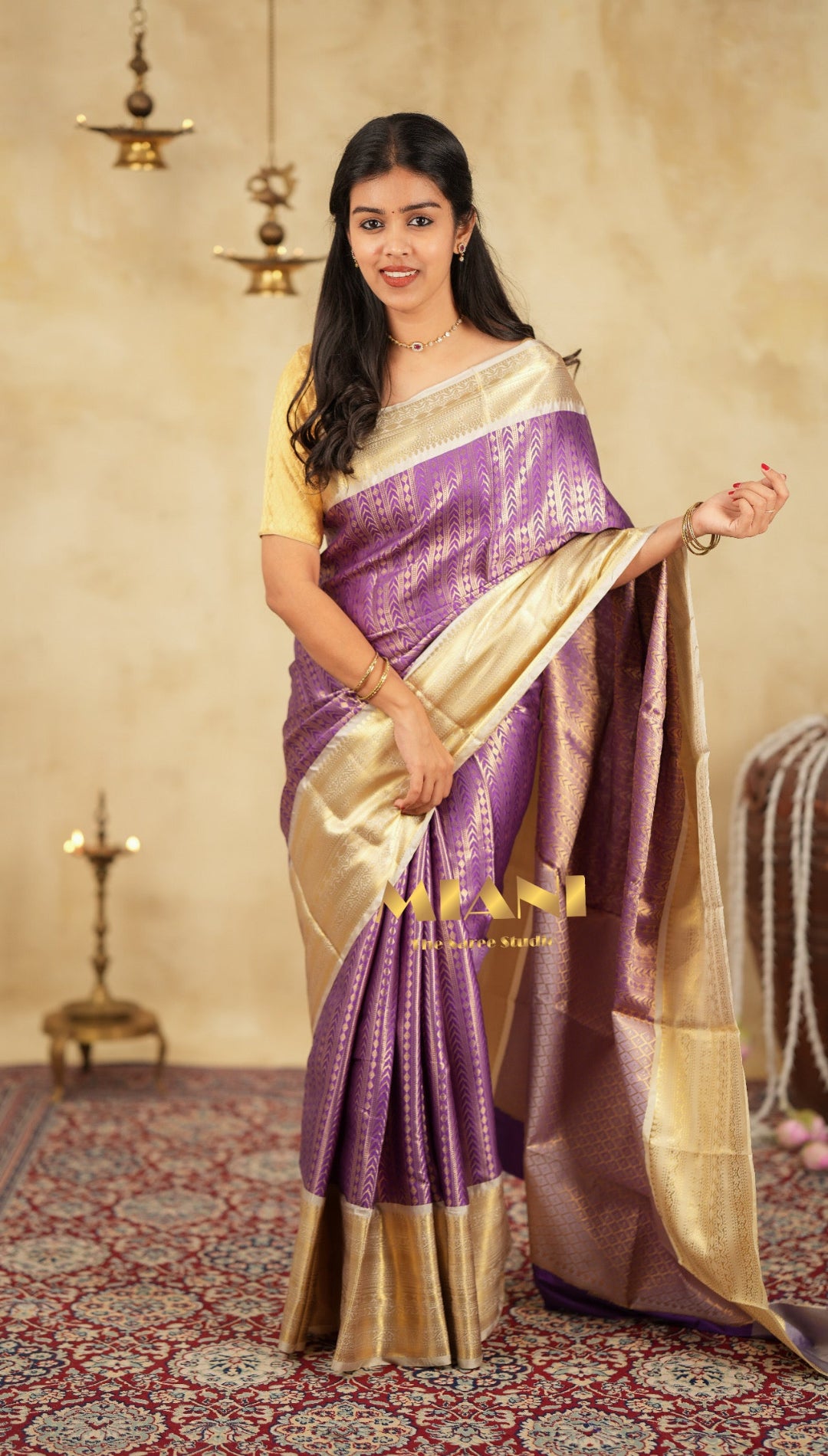 Fabric: Semi Kanchi silk saree with self weaving design, elegant pallu clubbed with blouse fabric.